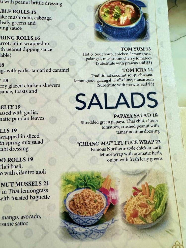 The menu boasts an array of tantalizing options, including Triangles Tofu with a crispy peanut dressing and Osha Fresh Spring Rolls that showcase plump prawns wrapped in delicate rice paper. Don’t miss the aromatic Tom Yum soup, brimming with lemongrass and galangal, or the comforting Tom Kha, a coconut delight.
